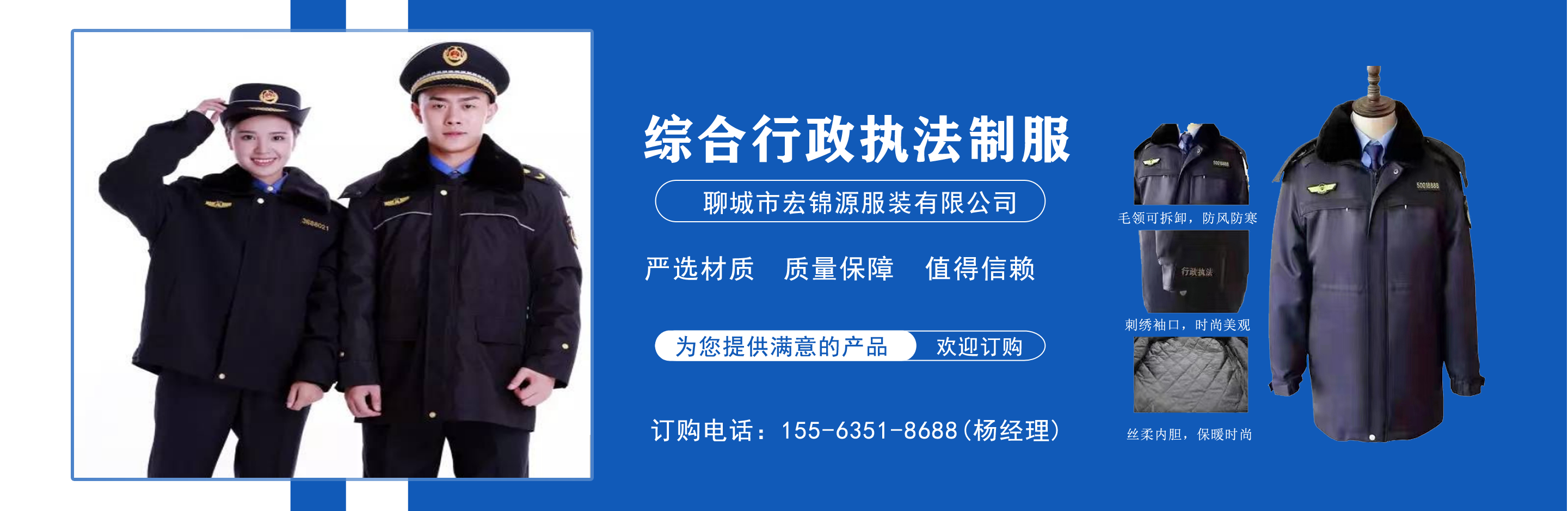聊城市宏錦源服裝有限公司位于江北水城—山東聊城,地理位置優(yōu)越,交通便利。公司主營綜合行政執(zhí)法制服,交通執(zhí)法服裝,應(yīng)急管理執(zhí)法標(biāo)志服,市場監(jiān)督管理標(biāo)志服,農(nóng)業(yè)執(zhí)法服裝,生態(tài)環(huán)境保護(hù)制服,文化市場執(zhí)法服,城管標(biāo)志服裝廠,衛(wèi)生監(jiān)督制服,六部門標(biāo)志服廠家等,值得信賴! 公司生產(chǎn)的標(biāo)志服裝據(jù)有造型美、板型新、多次水洗不退色、不變型、不起泡?! 罢J(rèn)真辦事,踏實(shí)做人”是宏錦源的企業(yè)精神,我們的宗旨是:“用服務(wù)與真誠來換取你的信任與支持,互惠互利,共創(chuàng)雙贏!”我公司愿與國內(nèi)外各界同仁志士竭誠合作,共創(chuàng)未來企業(yè)目標(biāo):在已選定的服飾領(lǐng)域中,成為行業(yè)的卓越者?! 〗?jīng)營理念:追求產(chǎn)品卓越,為用戶提供完美、高效的服務(wù)。...